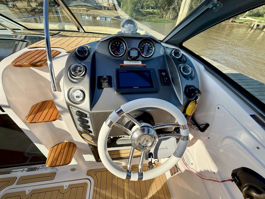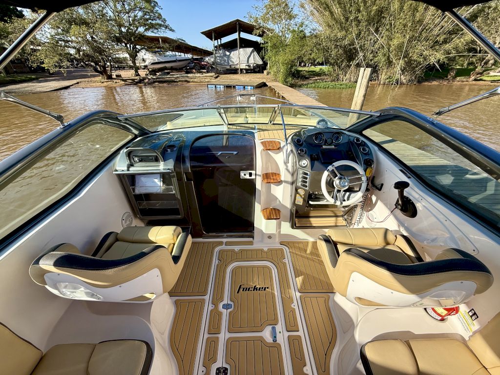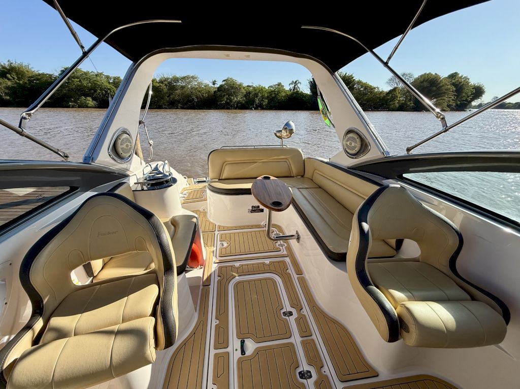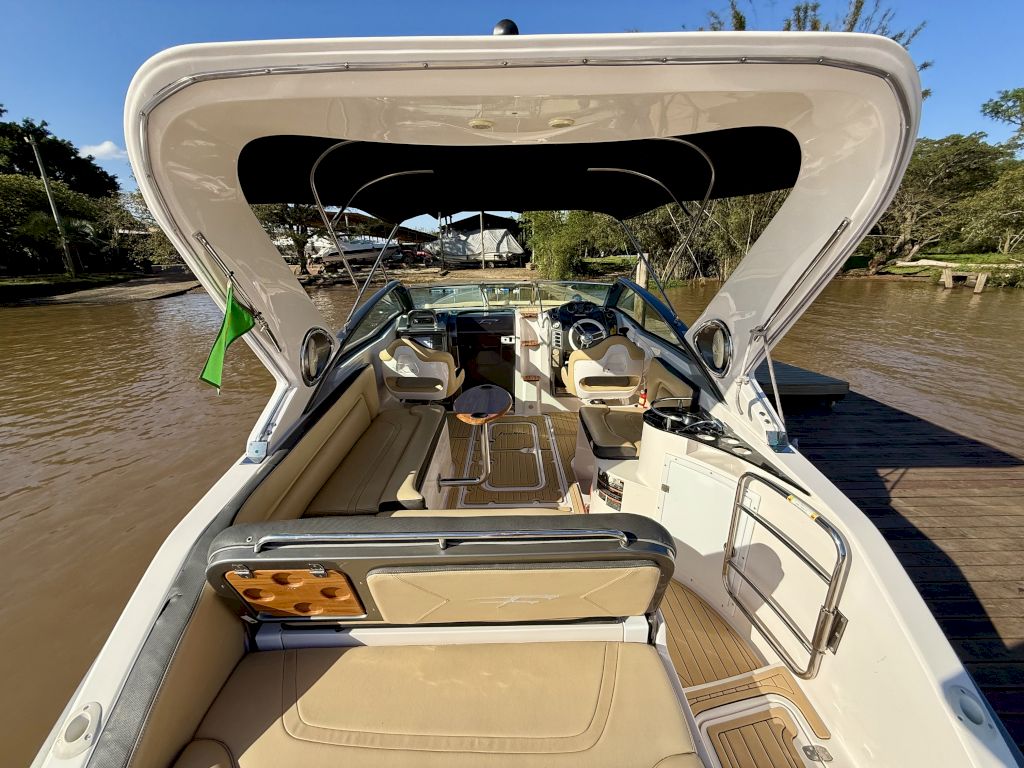 A Focker 275 contempla versatilidade e esportividade. Uma lancha com ótimo espaço interno para quem gosta de aproveitar os dias com a família e amigos. Ano 2014, motor Mercruiser 300 HP e diversos ítens opcionais já instalados: âncora com guincho elétrico, flaps, rabeta Bravo Three, churrasqueira, mesa de centro, banheiro elétrico, gps com sonar Garmin, som com alto-falantes, fechamento total, rádio VHF, pia com torneira, chuveiro de popa,…Lancha para clientes exigentes!